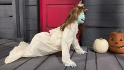 Add a real “Wow” factor to your haunted scene with this 10 foot tall Towering Reaper Animated Prop! The mood is set with the sighing, moaning wind in the background, as well as the eerie sounds of crows cawing, cats screeching, and owls hooting. His Turning Head and Moving Jaw are highlighted by his innovative Patented Digiteyes technology (Illuminated digital eyes that appear to look around and blink at you). The Reaper has a rich, deep persuasive voice that says his haunting phrases:
