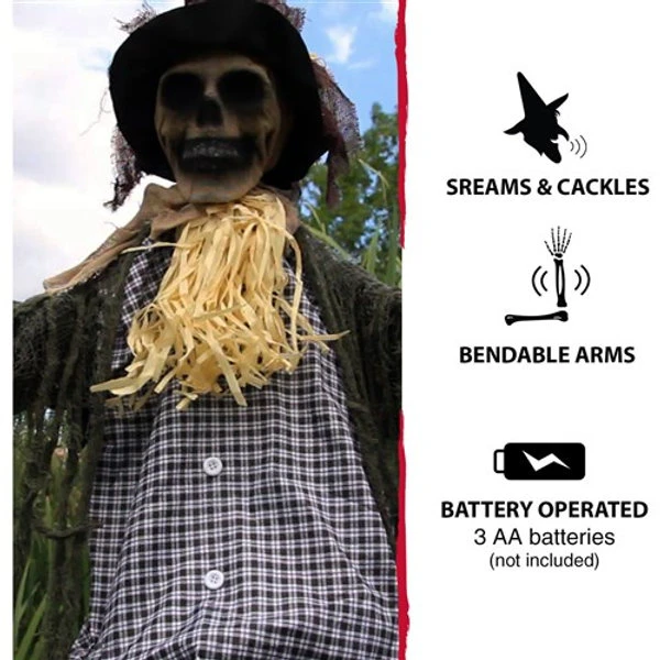- 67 in. animatronic scarecrow for indoor and covered outdoor display