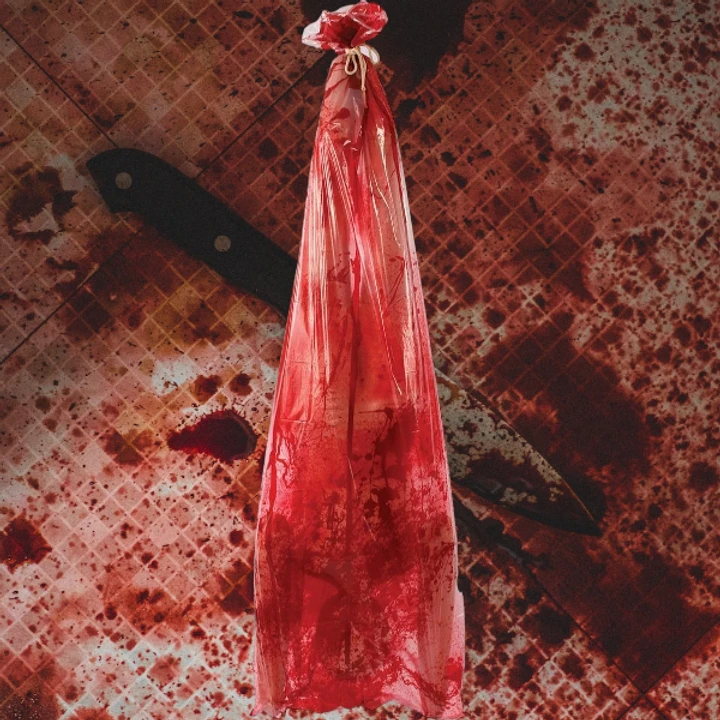 Add some extra frights to your Halloween or Haunted House display with this Bloody Body In Bag prop!