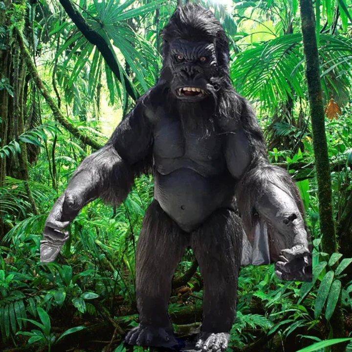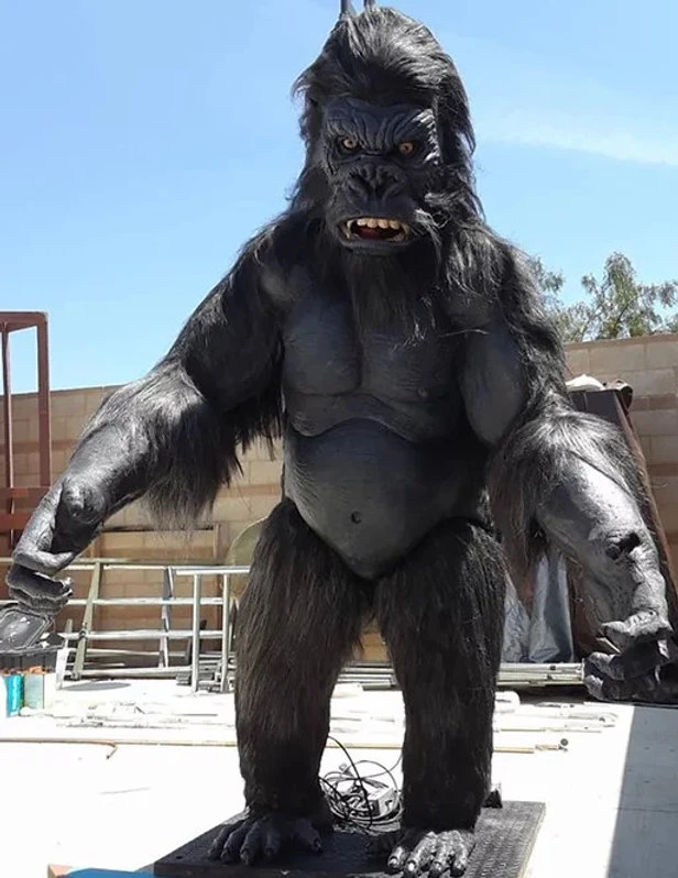 90″ King Kong “gorrila” prop static with NFT natural hair fiber , national fiber technologies. urethane platic dentures. glass eyes, realistic glass eyes.