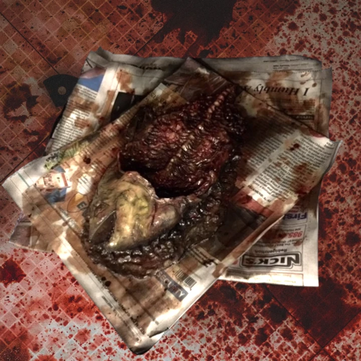 Thick latex skinned poly foam filled fish mounted on nasty newspaper. Cardboard base for stability.