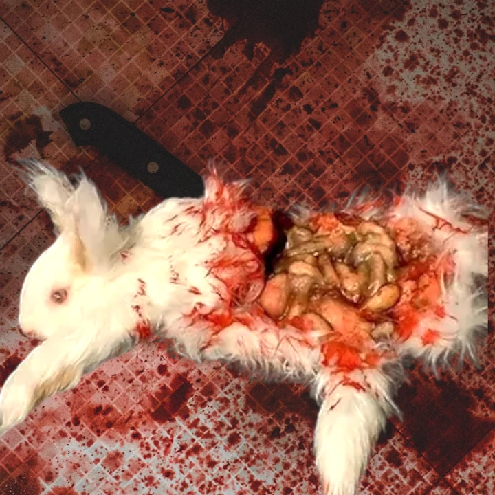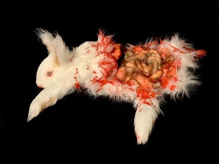 Large lifesized highly detailed dismembered rabbit. Thick latex skinned foam filled prop with faux fur.