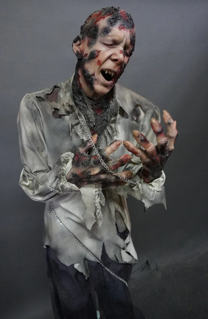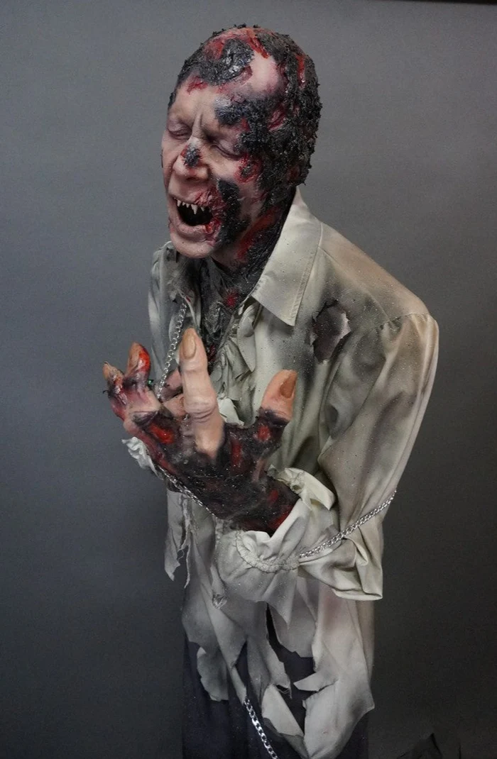 Vampires can be burned with sunlight and silver as well as fire. Poor Bernie is is chained up and burning to a crisp.