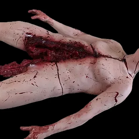 The Ben cadaver has been split into two branches. It features a long cut from the groin to the middle of the chest with lots of gore. Shipping Dimensions: 72″ x 24″ x 12″