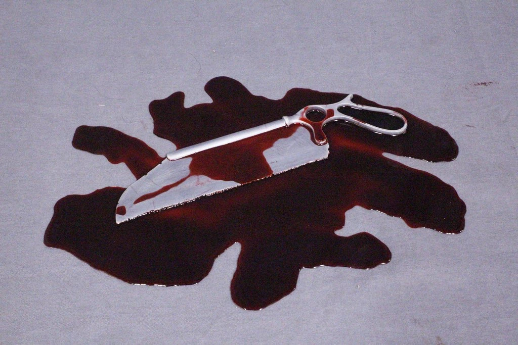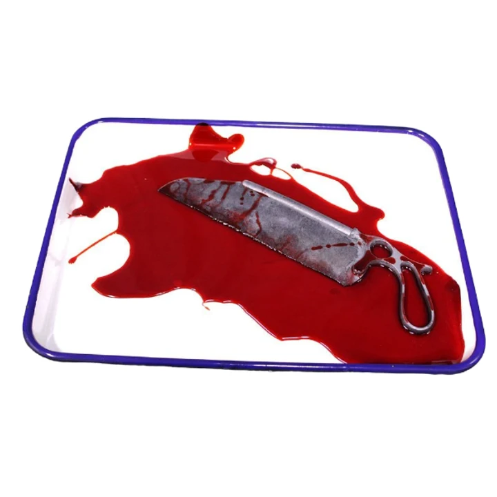 perfect for a morgue or a haunt, an rubber replica bonesaw embedded in blood resin.