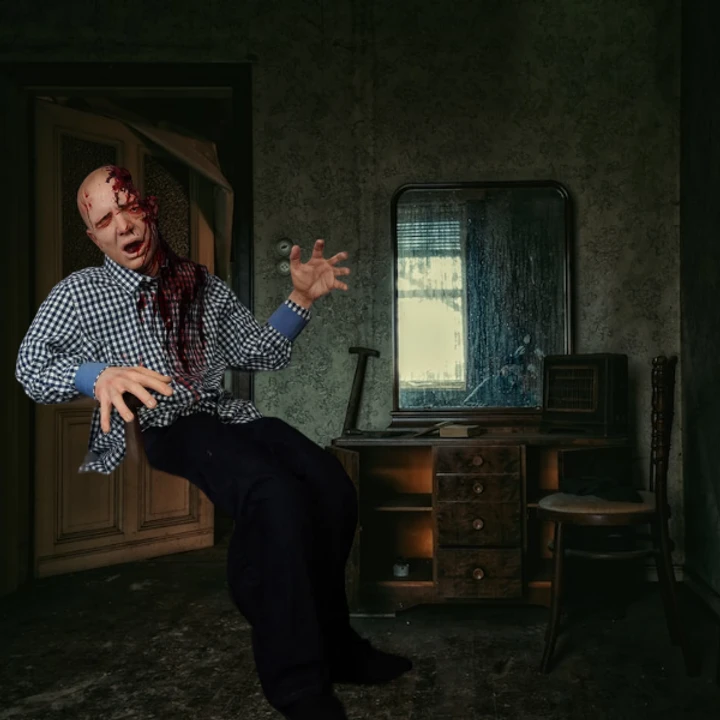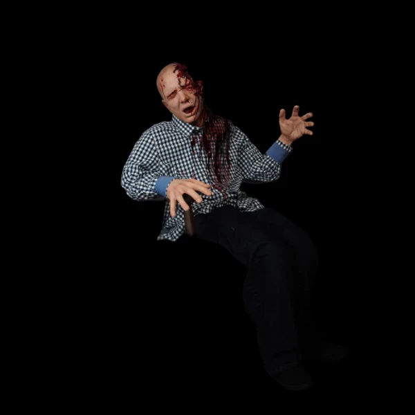 Poseable dummy body with extreme gore brainfood Glen head and lifecast hands.