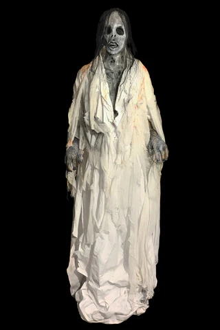 Illustrate horror with this grotesque apparition! Standing life-size figure. Foam-filled latex core torso with thick, quality latex head and hands. Lower body/leg area is made of metal pipes, covered by costume. Leg pipes are cut in sections for shipping and storage and are easily assembled with the provided connectors! Base is welded steel. Handmade and individually hand painted!