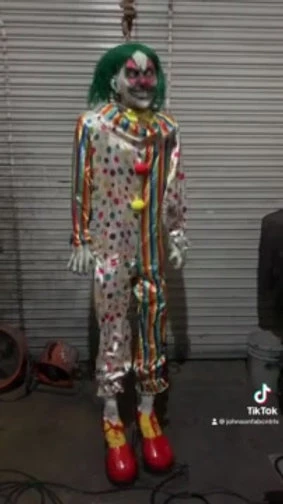 This awesome kicker hangs from the neck while kicking and giggling , complete with plc controller , full stereo audio , pir sensor activation