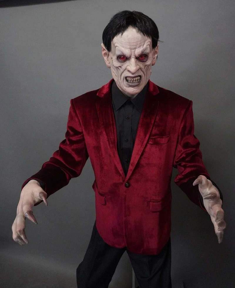 This vampire figure features our Malice head and clawed hands in a red velvet coat
