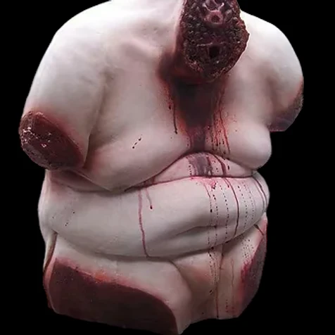 This gory lifecast body is cut off at the legs, arms and head, with detailed gore at the neck stump. Made in polyfoam rubber.