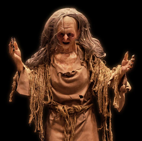 This wicked creature will transport your guests directly into a world of dark magic and terror. With her piercing gaze, and wild hair, the Forest Witch is a sight to behold. Place her in your haunted forest and watch as your guests tremble in fear.
