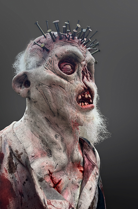 Introducing the spine-tingling Inbred Jed, the perfect addition to your haunted house or Halloween display. Standing at a towering 6 feet tall, this eerie prop features a fully flexible body form that can be positioned in a variety of terrifying poses. With real nails protruding from his head, Inbred Jed is sure to send shivers down the spines of all who dare to cross its path.