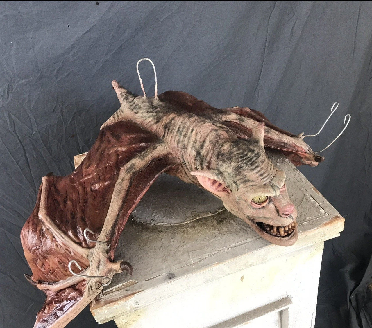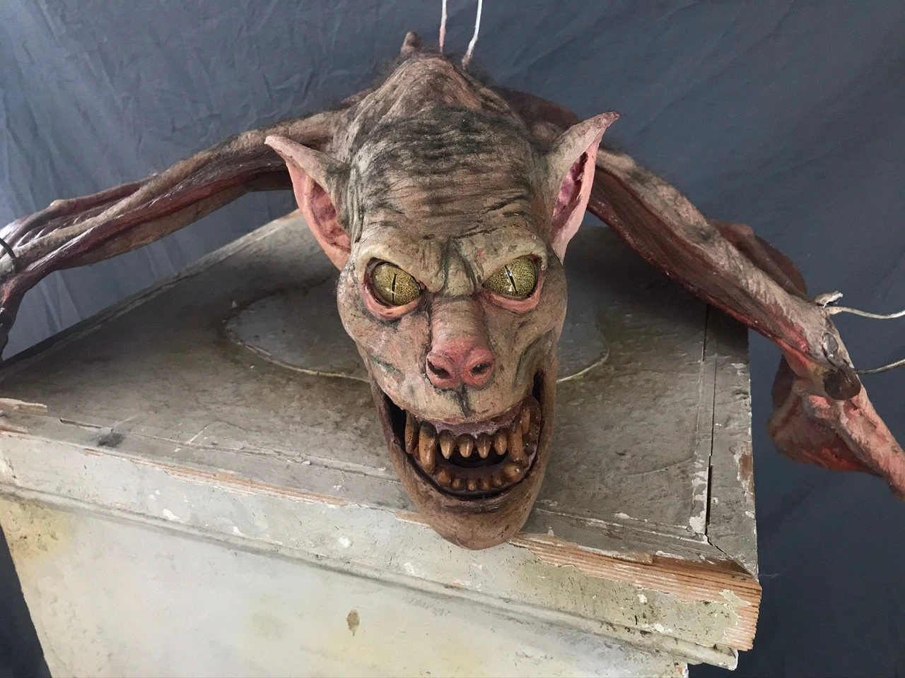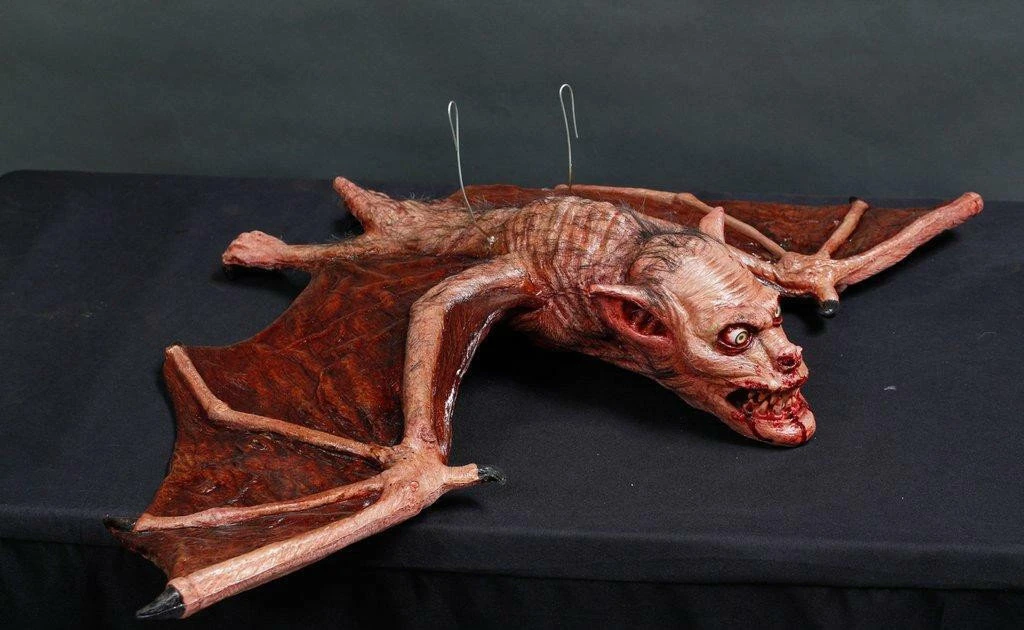 This large vampire bat is swooping in for the kill. Made of foam rubber and faux fur. 36″ wingspan and 24″ body length.