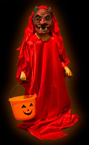 Upper body is foam filled latex, lower body is metal pole covered by the costume. Assembly required! approximately 3 feet tall.
