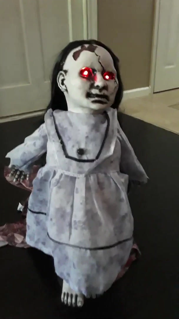 Beware! This frightening Halloween prop comes to life! It’s a scary little broken doll just sitting out in the graveyard on her blanky, but don’t get too close as she may come to life and get you! Injection-molded mechanism of a lunging Dolly character, featuring fabric costume, printed soiled blanket, Soft-PVC head with long stringy hair, Soft-PVC hands and feet. Red LED eyes & sounds. Battery-operated or UL adapter plug, Uses 4 AA batteries (not included).Special Shipping Information: This item ships separately from other items in your order.