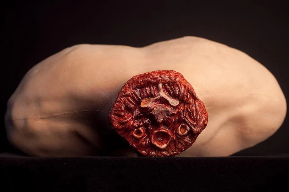 Larger and thicker than our female neck stump but just as bloody and gory. Complete with vertebrae!