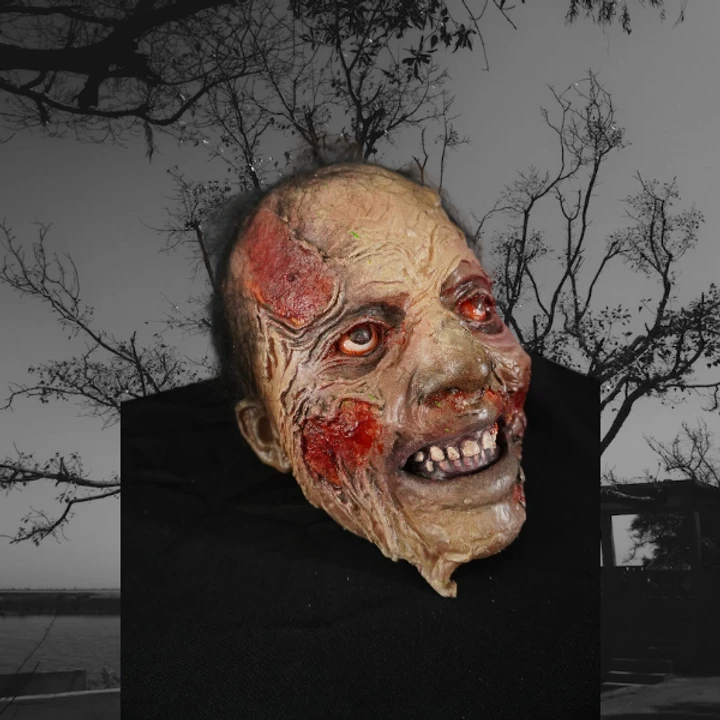 Gory female mutilation or zombie head with eyes. No neck. Hair available on request.
