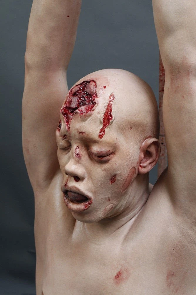 Lifesize, lifecast Oscar torso meant to hang in a meat locker or other grisly location. Lots of blood and gore.