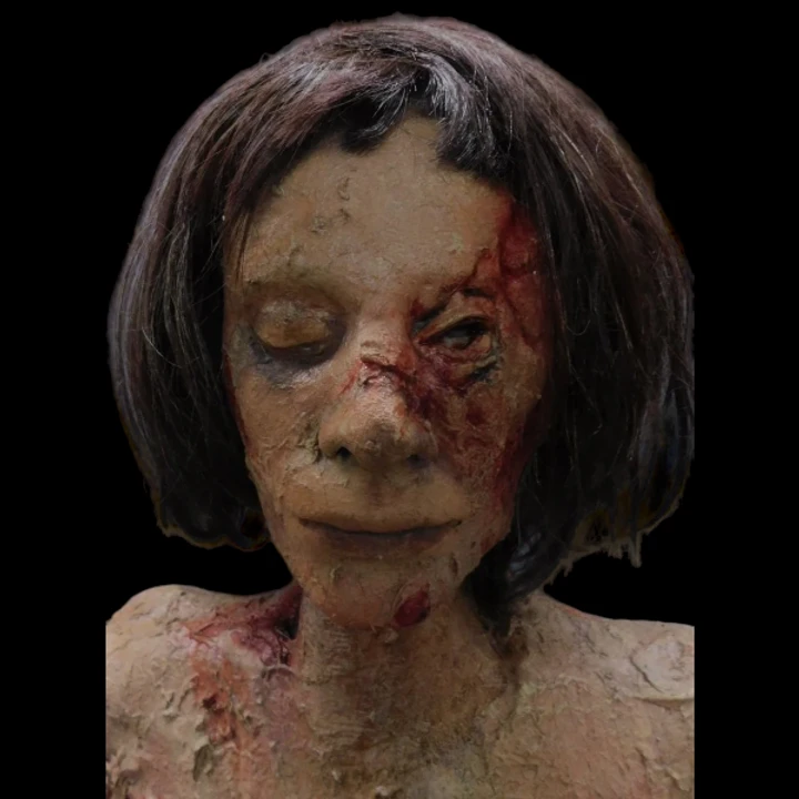 Putrid Holly Head is in a state of desiccation where the skin begins to shrink and slip.