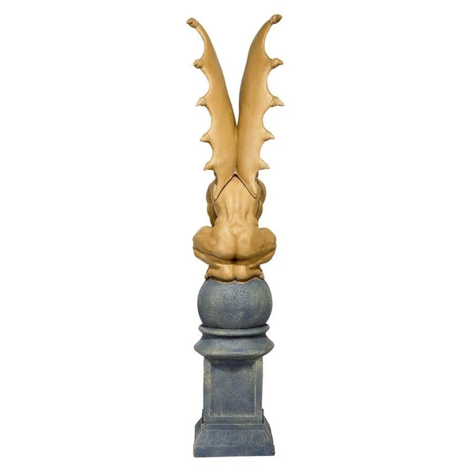 Seated on a ball-topped plinth with his massive, spiny wings stretched skyward, this yard-tall, menacing gargoyle is ready to become the centerpiece of your Gothic collection! Artist Manchester, well versed in the history and lore of these fabled creatures, spared no detail in the exquisite sculpt or intricate hand-painting. He’s cast the guardian “Talysus” in quality designer resin