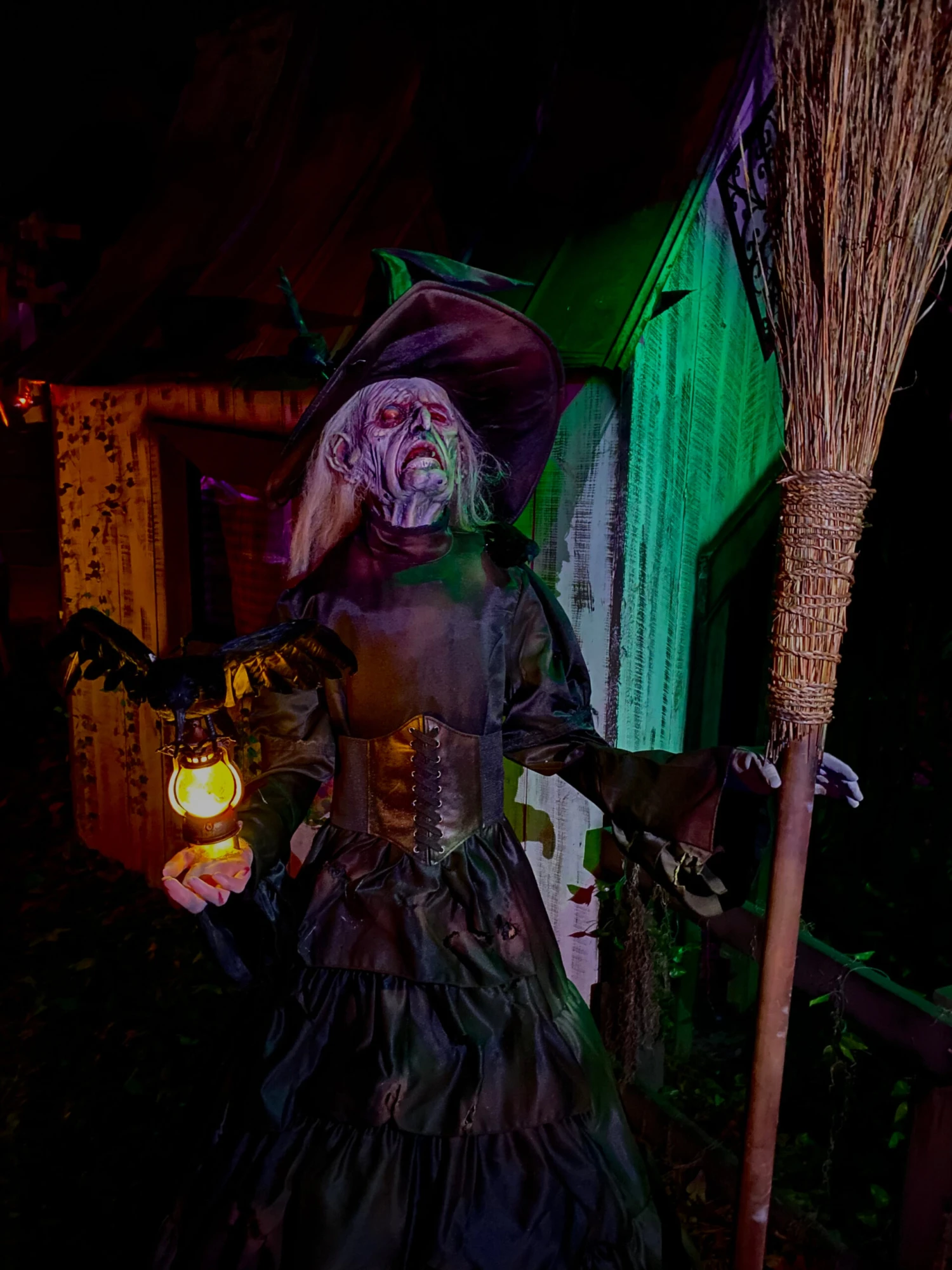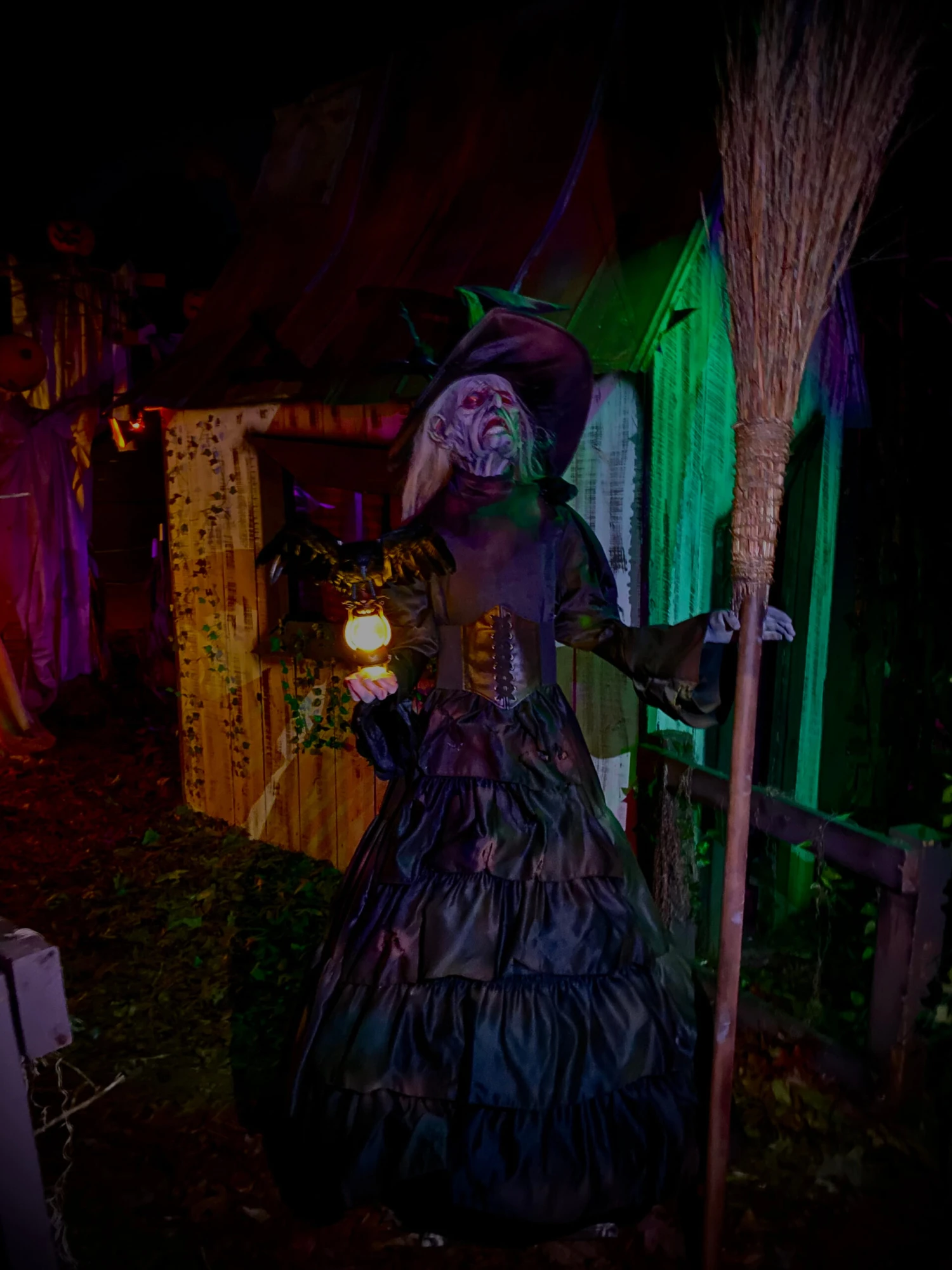 Comes apart at waist ! The witch comes with broom ravens and light !
