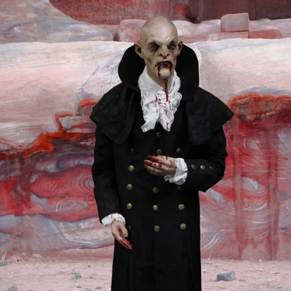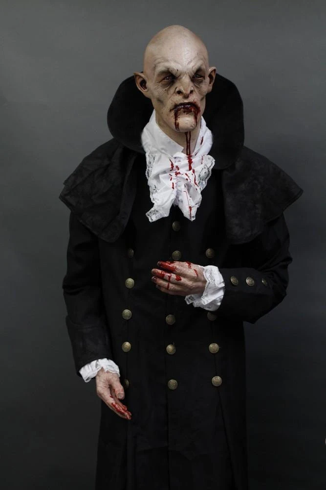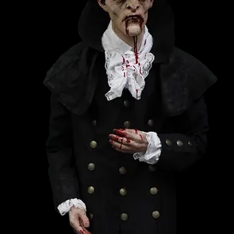 Our vampire baron figure features our baron head with blood dripping from his mouth and hands. Figure comes with black cape, black pants, white shirt and black shoes.