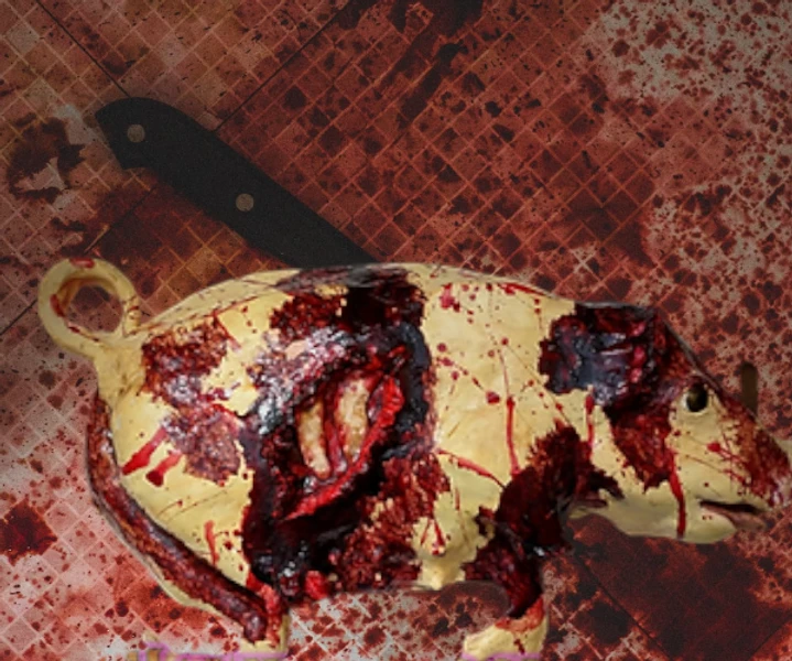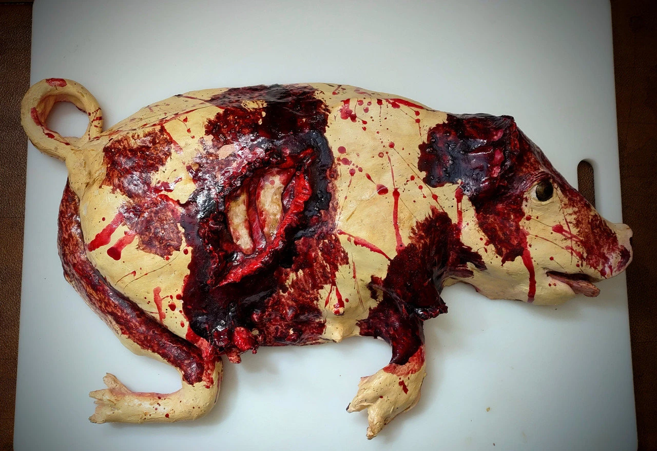 The outside of Wilbur is latex,hand painted, and finished with permablood. The inside has a bit of foam.